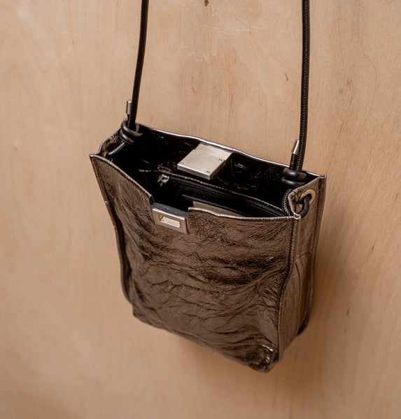 Simply modern and elegant! Get addicted to this beautiful lightweight crossbody in the exclusive Metal Colored Leather from Italy! The beautiful material is a unique technique developed in Italy, and the bag is all handmade in Israel.