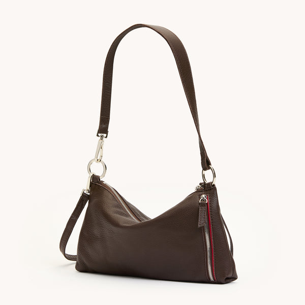 This fresh, of-the-moment bag is a must-have companion for nights on the town. Featuring a slouchy but current shape, this versatile little number transitions from a wristlet to a shoulder bag in seconds flat. The Kyle also includes a removable and adjustable crossbody strap, so you can go hands-free and allows the Kyle to be worn 3 different ways depending on your look!
