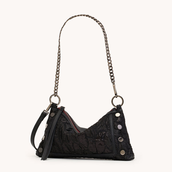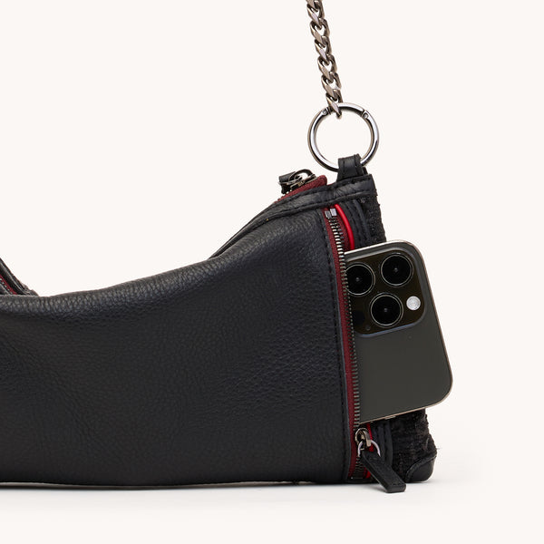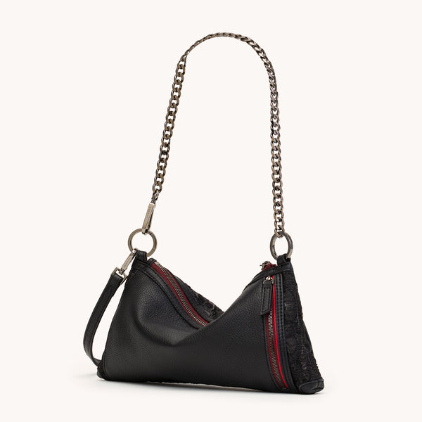 This fresh, of-the-moment bag is a must-have companion for nights on the town. Featuring a slouchy but current shape, this versatile little number transitions from a wristlet to a shoulder bag in seconds flat. The Kyle also includes a removable and adjustable crossbody strap, so you can go hands-free and allows the Kyle to be worn 3 different ways depending on your look!