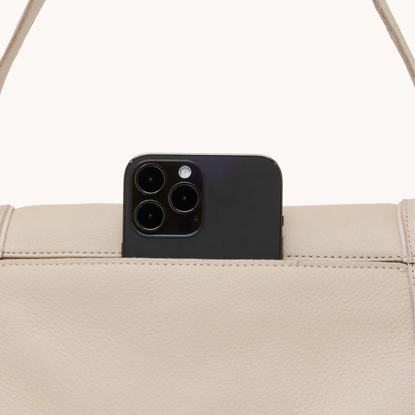 Oh, BEV! We love the blending of our two fav bags - Bryant and VIP! Beverly offers a modern update with trend-forward elongated styling. The Bev includes a bonus shoulder strap and an enhanced magnetic cell pocket closure, adding a fresh edition and upgrade to this iconic series. Choose how you carry this new statement, thanks to a removable, adjustable crossbody strap. Simply unhook the short strap for a crossbody-only look. Crafted with our classic pebbled leather, this elevated bag is intended to get softer and softer with every wear.