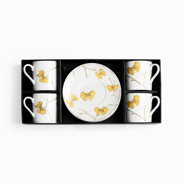 Experience the poetic elegance of the Butterfly Ginkgo Gold Demitasse, where nature’s whimsy meets masterful craftsmanship. Inspired by the double-leafed ginkgo Biloba, each piece evokes the delicate flutter of butterfly wings, rendered in solid brass with intricately etched cocoon-shaped vessels. Handcrafted to perfection, this demitasse is a celebration of Indian artisanal skill and Michael’s visionary artistry—transforming everyday moments into a luxurious, poetic experience.